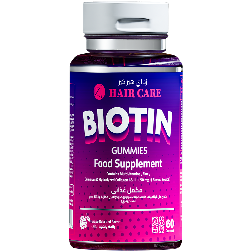 مكمل غذائي يحتوي على البيوتين والكولاجين والزنك وفيتامين سي والسيلينيوم والفوليك اسيد وفيتامين أ وفيتامين ب 6 وفيتامين ها.